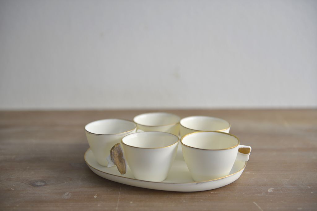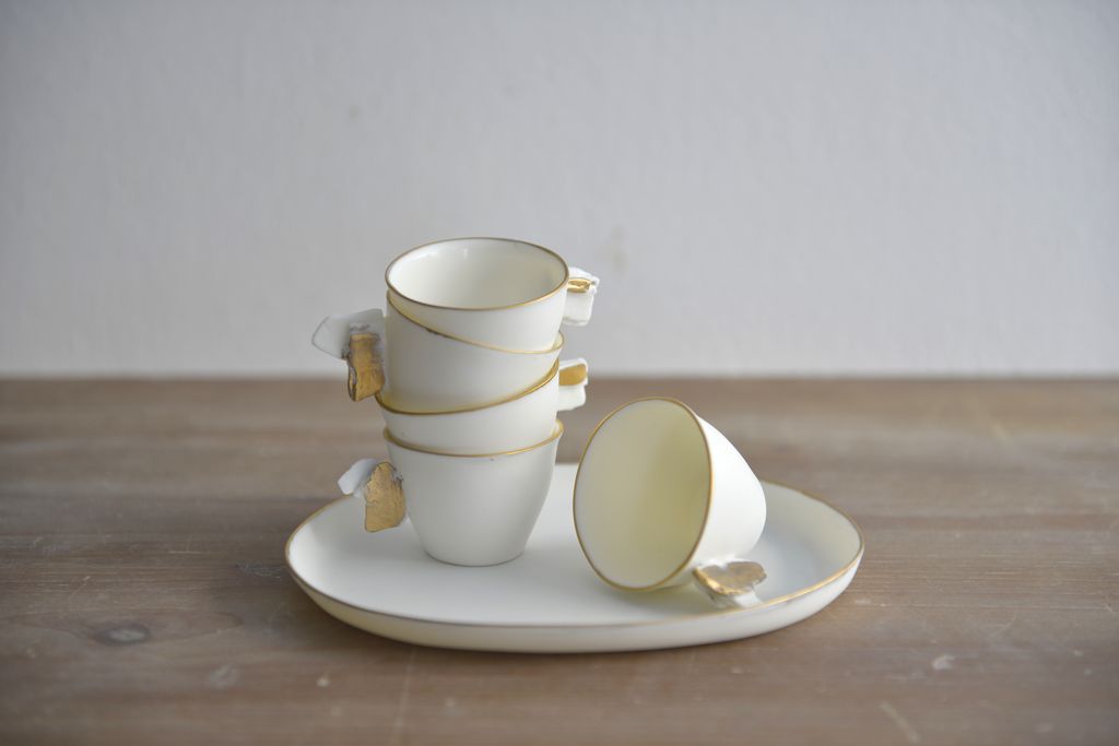 Kaffeset aus Porzellan mit dünnen Goldrand