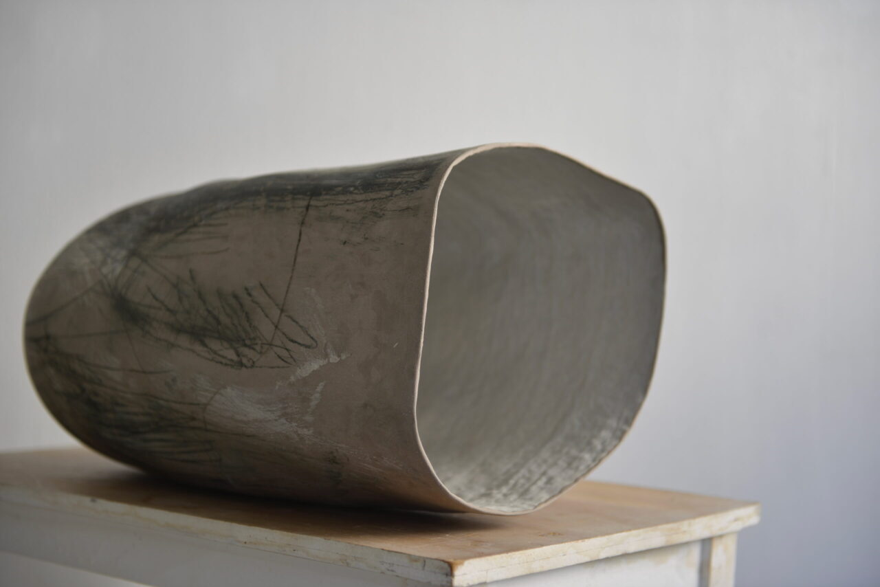 Künstlerin: Selma Etareri Entstehungsjahr: 2025 Material: Original – Keramik, handgearbeitet Maße in cm: ca H: 31 / B: 33 / T: 59 (Öffnung = B)
